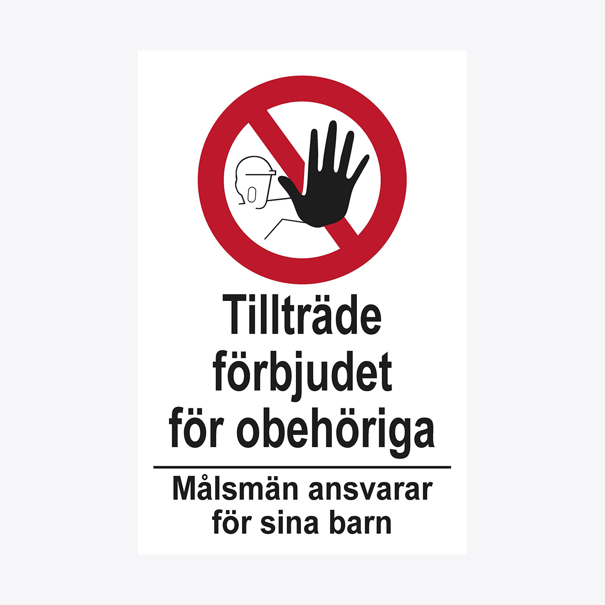 / Förbudsskylt Tillträde förbjudet för obehöriga/målsmän ansvarar för sina barn PVC 5 mm.