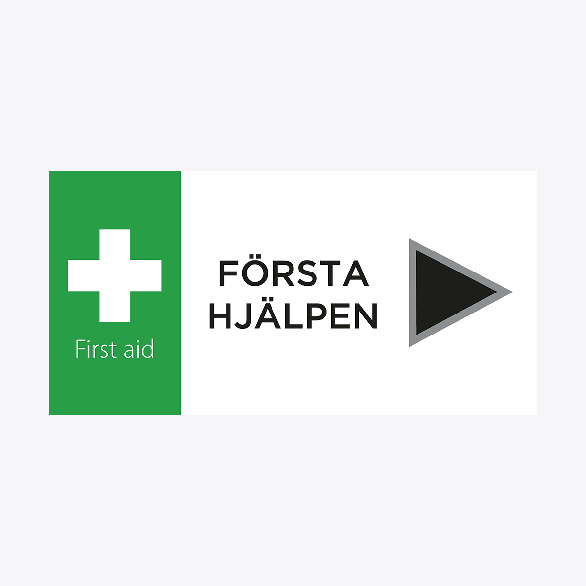 / Hänvisningsskylt första hjälpen pil höger 600 x 300 mm PVC 5 mm.