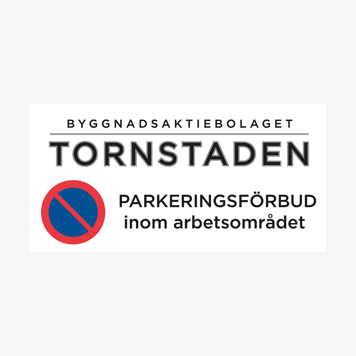 Hänvisningsskylt parkeringsförbud inom arbetsområdet 600 x 300 mm PVC 5 mm. mängd