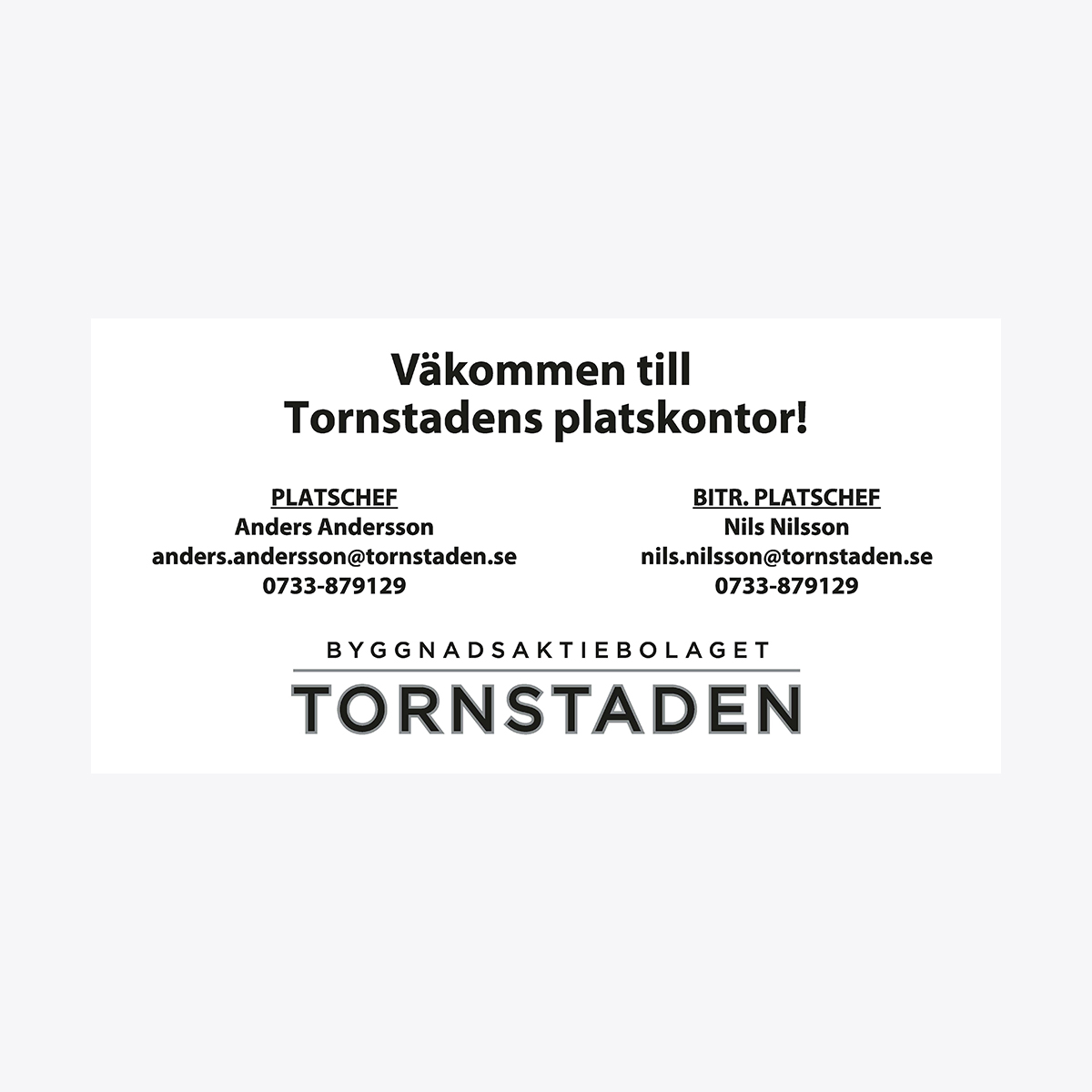 Informationsskylt kontaktuppgifter platschef PVC 5 mm. mängd