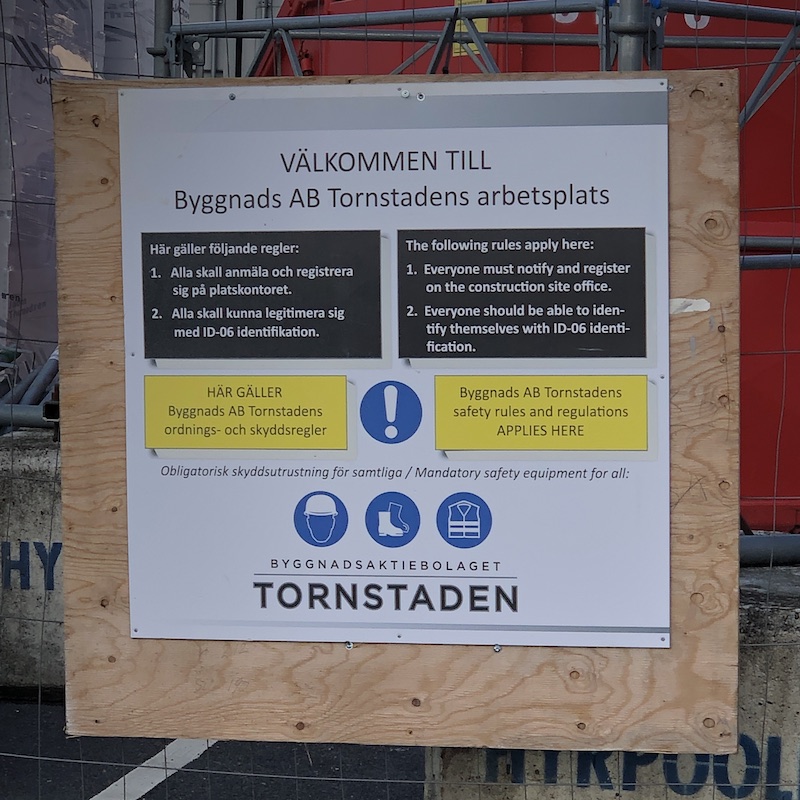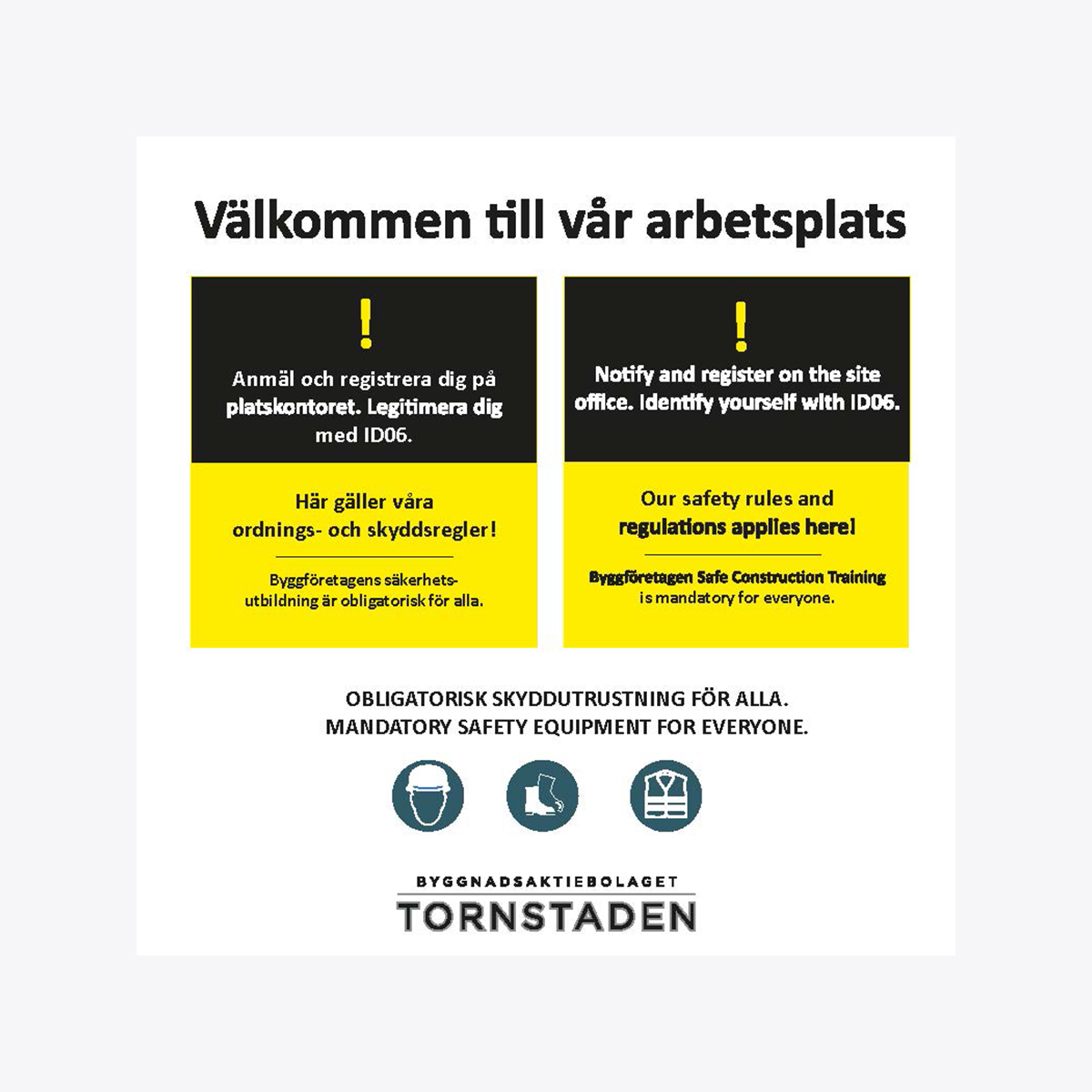 Denna skylt är obligatorisk för alla arbetsplatser och är UV beständig. Den ska monteras vid ingången. Skylten är endast 5 mm tjock och kan monteras både inne och ute.